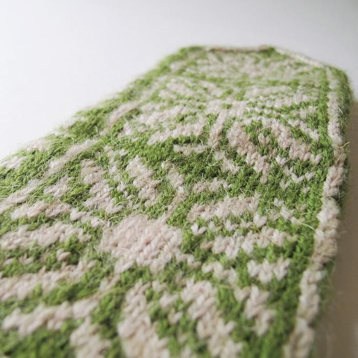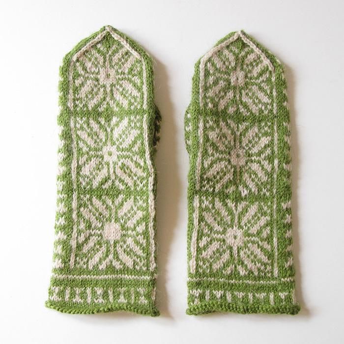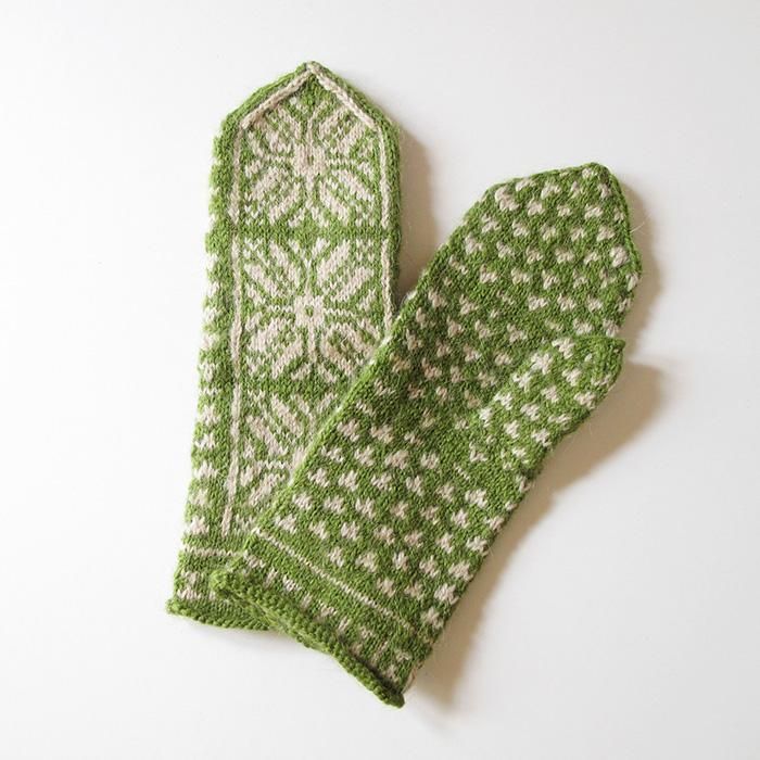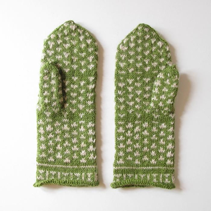 北欧の伝統的なハンドメイドミトンはさきっちょが三角なのがかわいい。こちらのミトンは色使いも素敵ですよ。ざっくりとした手編みのミトンは、冬のコーディネートのポイントになりますよ。