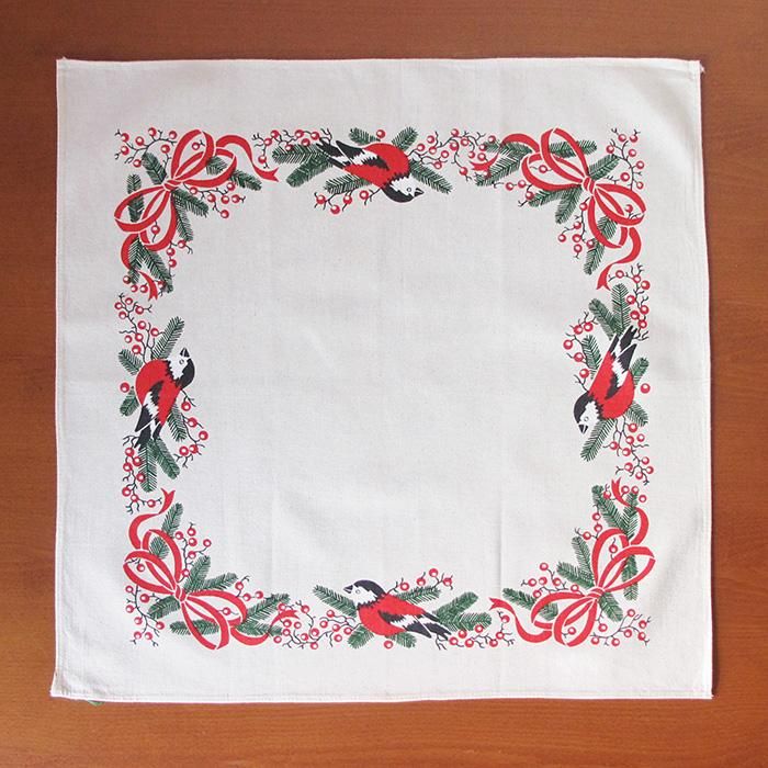 クリスマスの鳥といわれる「ウソ」とクリスマスホーリー。ホリデー気分満載のデザインです。テーブルの真ん中はもちろん、サイドボードやローテーブルにもおすすめですよ。
