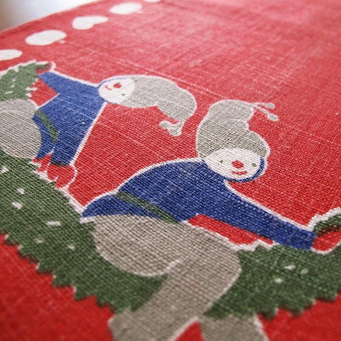 トムテがキュートに描かれた真っ赤なコットンリネンでホリデー気分満載。サイドボードやテーブルの上にオススメですよ。上にクリスマスのオブジェをちょこちょこっと飾るだけでクリスマスらしさを演出できますよ。
