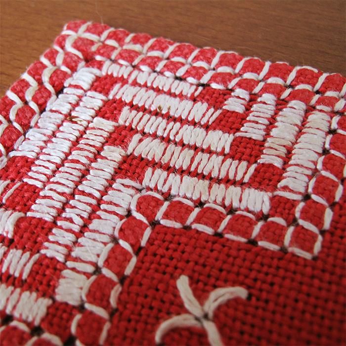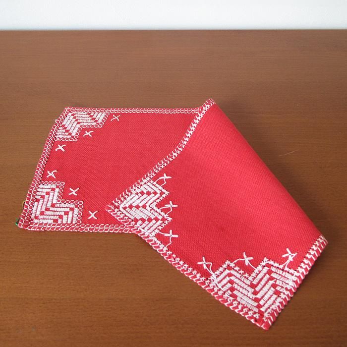真っ赤なリネンに白い刺繍がシンプルながらもクリスマスらしい一枚。サイドボードやテーブルの上にオススメ。クリスマスの飾りなどをちょこっと置くだけで北欧らしいディスプレイができますよ。北欧の「てしごと」を堪能できる一枚です。